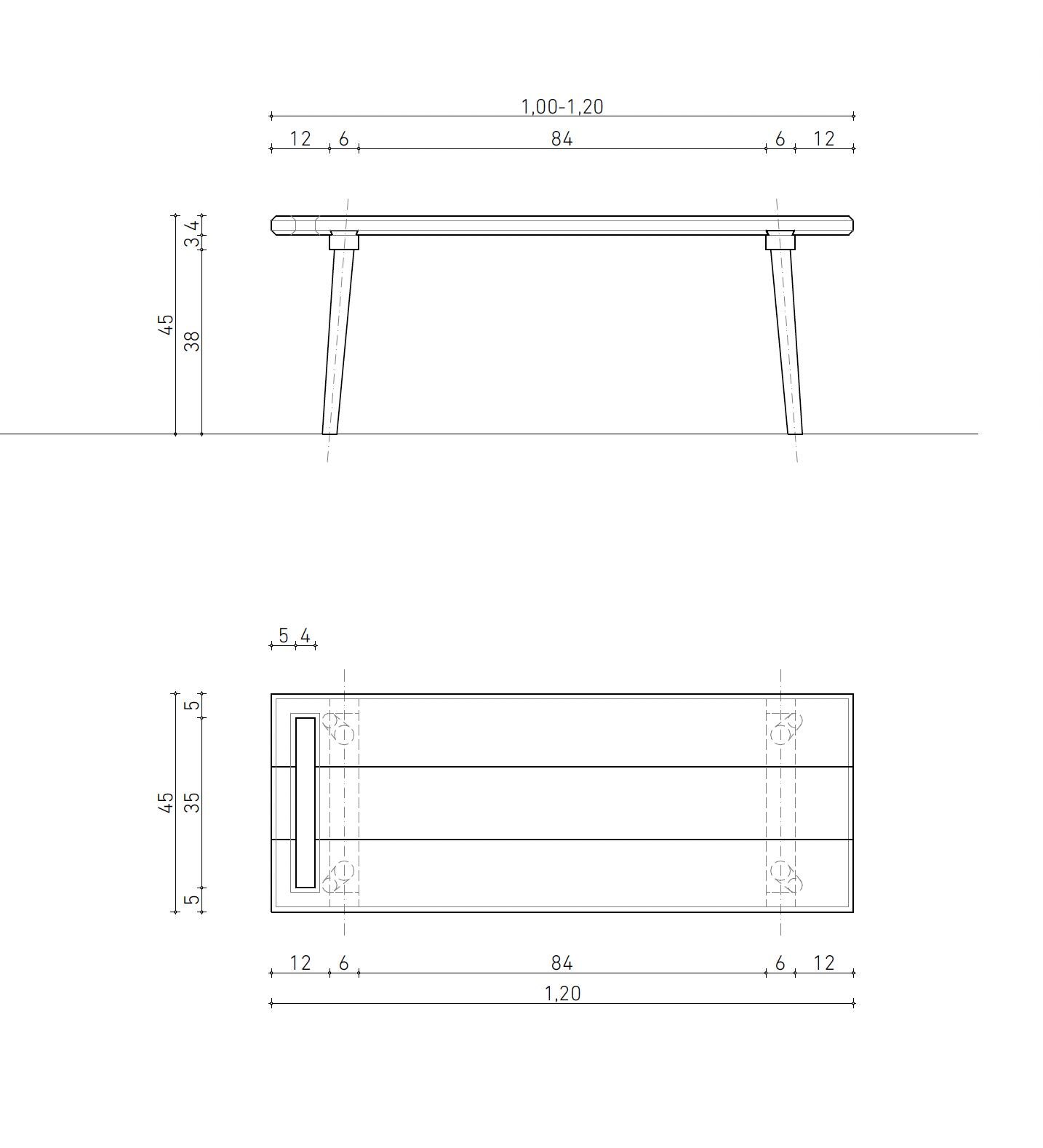 Material: Oak or spruce Dimensions: LxWxH 100x45x45cm or 120x45x45
