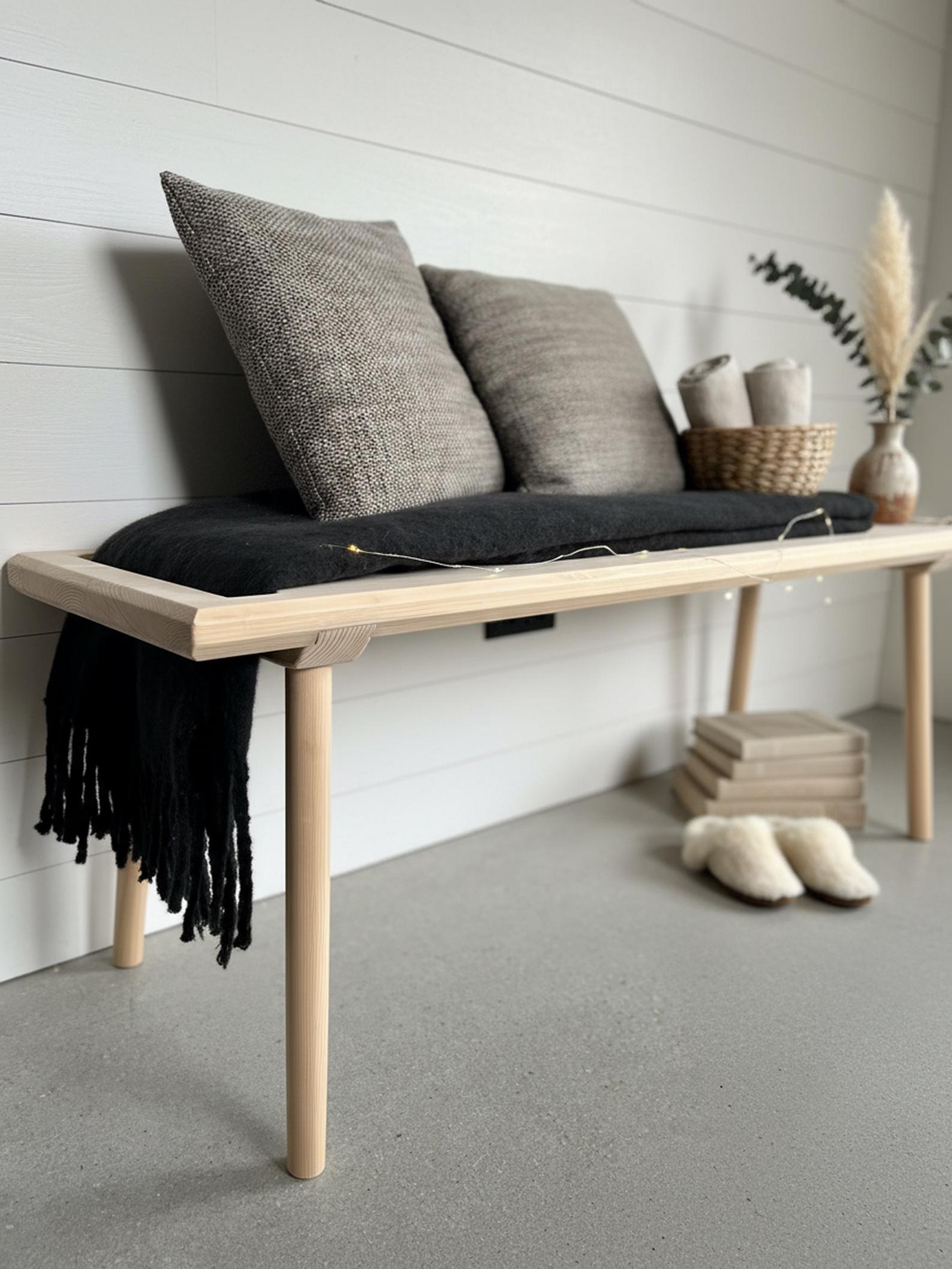 This wooden bench is perfect for minimalist living spaces, entryways, or as a stylish piece of furniture in your home. Order your custom-designed piece now!