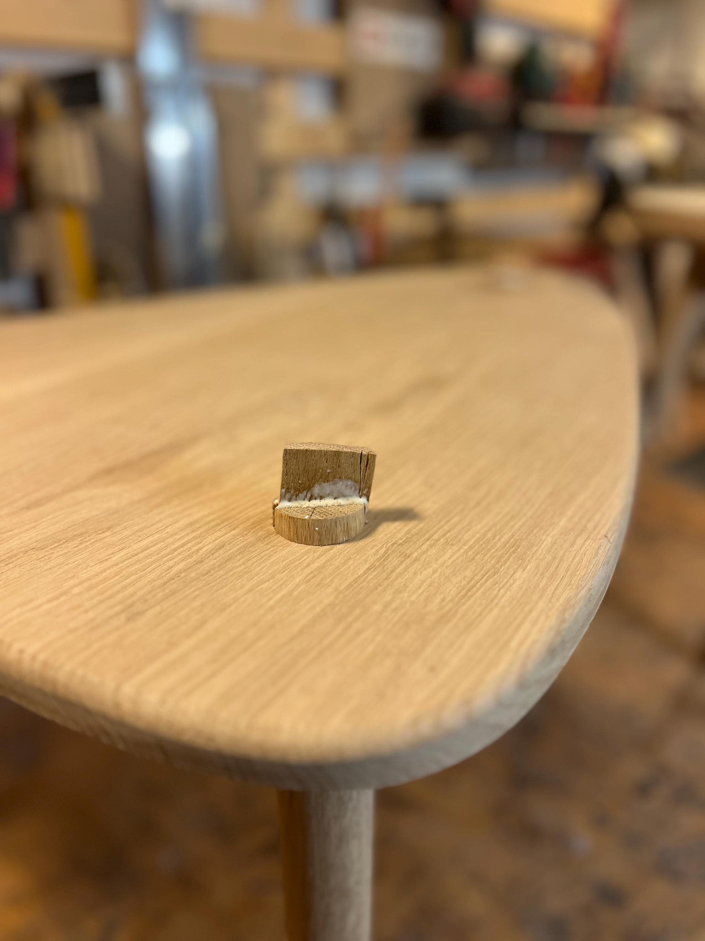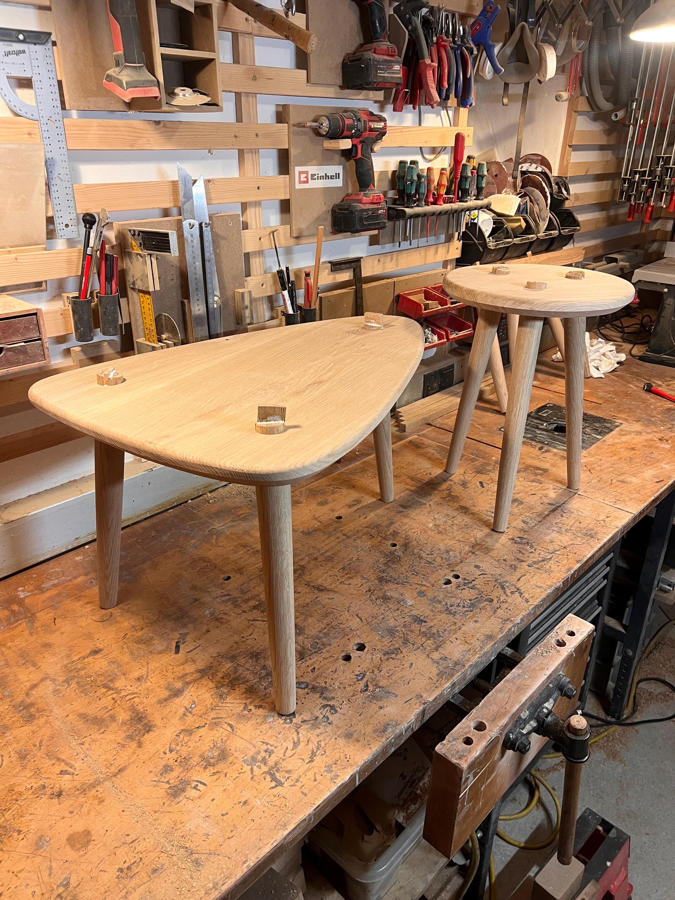 Dieser handgefertigte Beistelltisch aus massiver Eiche verbindet zeitlose Eleganz mit natürlicher Wärme. Jede Tischplatte wird sorgfältig aus Eichenbrettern gefertigt und erhält durch ihre organisch geschwungene Form einen besonders harmonischen Ausdruck. Die fein geschliffene, mit natürlichem Öl veredelte Oberfläche betont die lebendige Maserung des Holzes und macht jedes Stück zu einem Unikat. Getragen wird der Tisch von drei leicht konischen Beinen, die ihm eine luftige Leichtigkeit verleihen und gleichzeitig für eine stabile Konstruktion sorgen.