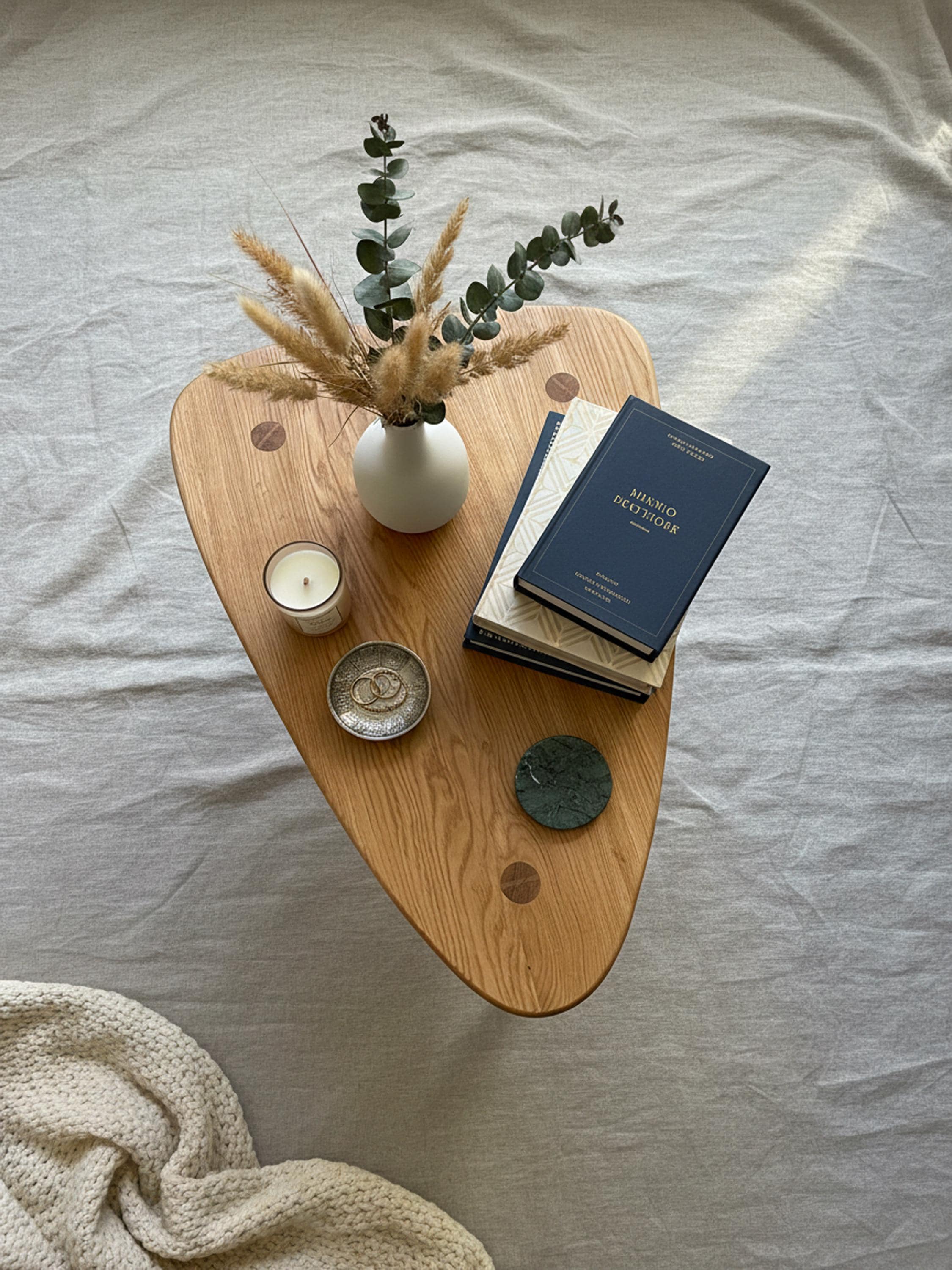 Mit seiner angenehmen Größe und dem minimalistischen Design fügt sich der Tisch mühelos in moderne, skandinavische oder japanisch inspirierte Räume ein. Er eignet sich ideal als Coffee Table oder dezente Ablage im Wohn- oder Schlafzimmer und bringt eine ruhige, natürliche Atmosphäre in jeden Raum. Da jeder Tisch einzeln in sorgfältiger Handarbeit entsteht und das Holz individuell gewachsene Strukturen zeigt, erhalten Sie ein echtes Einzelstück, das Ihre Einrichtung auf besondere Weise ergänzt.